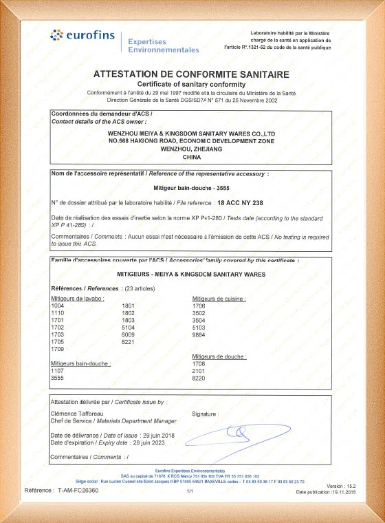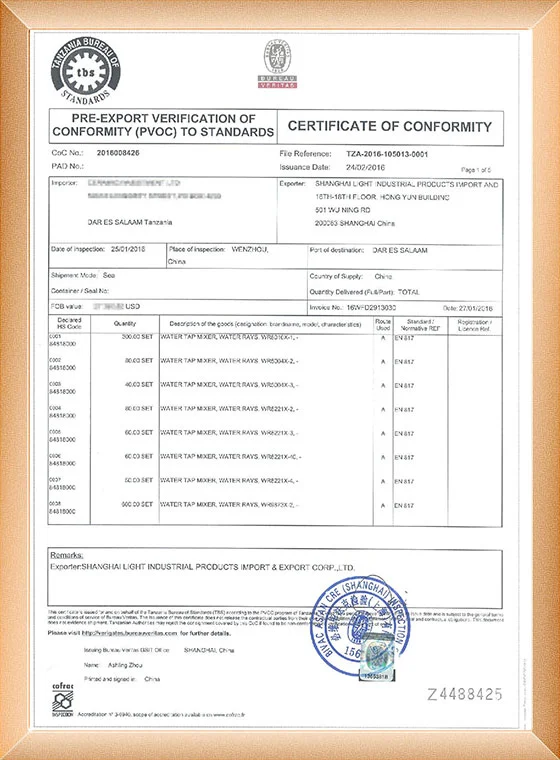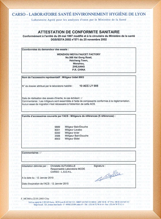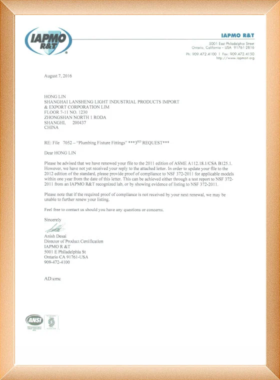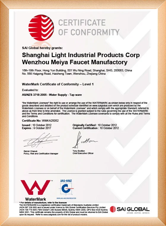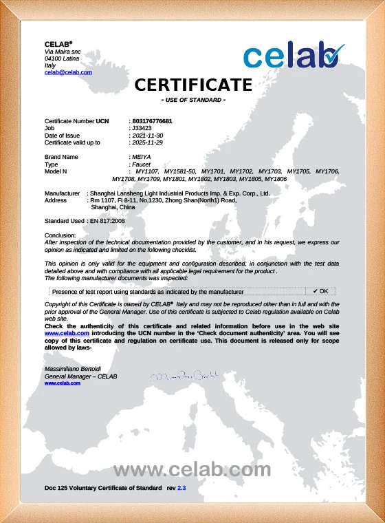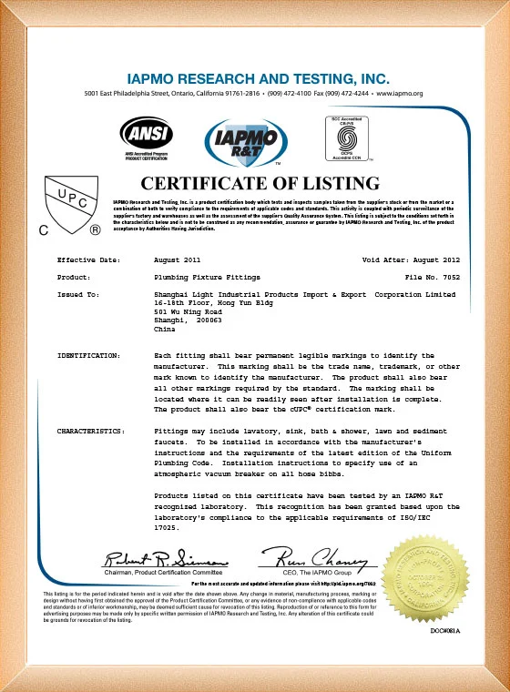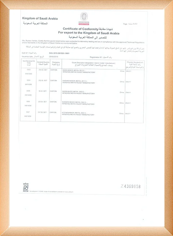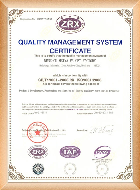 Vår tillverkning av kran har passerat ISO9001, CE, ACS, CUPC, vattenstämpel, NSF/ANSI, SASO.