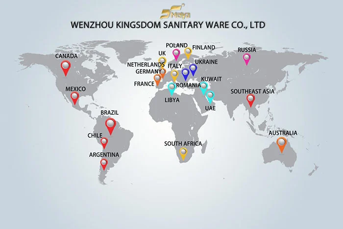 Wenzhou Kingsdom Sanitary Ware Co., Ltd. har etablerat en stark närvaro på den globala marknaden, med stöd av ett brett distributionsnätverk som sträcker sig över olika länder. Dess framgång kan tillskrivas dess oöverträffade engagemang för kundnöjdhet, kontinuerlig innovation och anslutning till internationella kvalitetsstandarder.